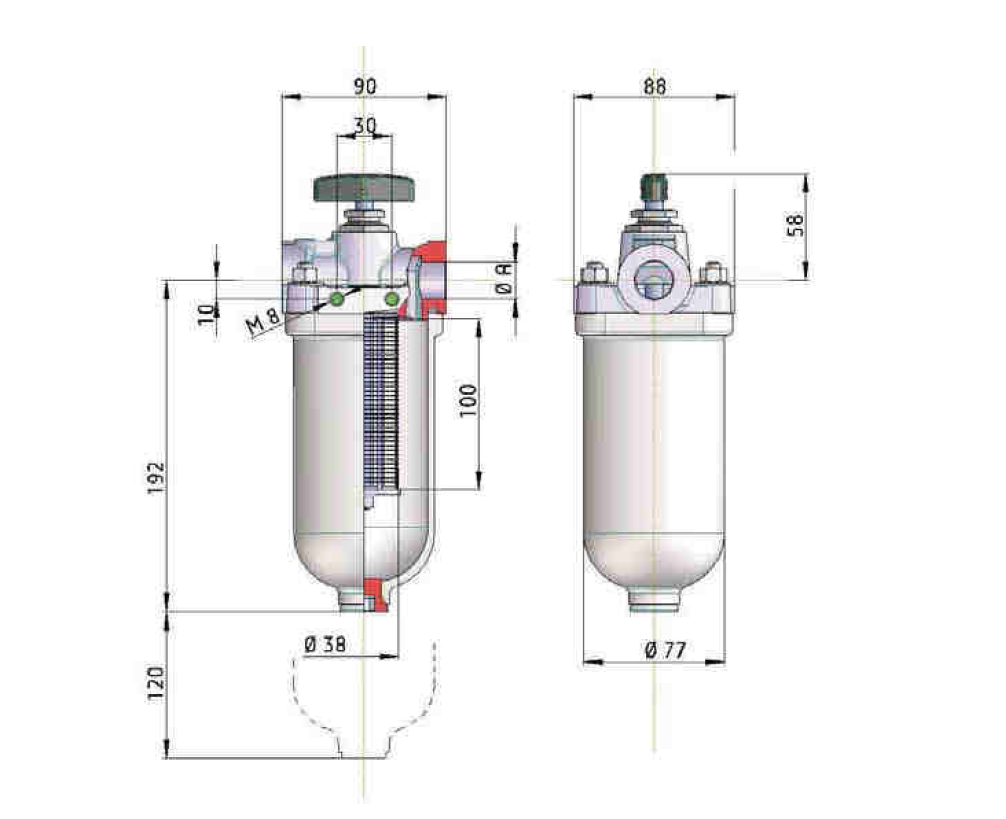 Nenndurchfluss [l/h]: 3000 (72 cSt mit dp 0,2 bis 0,4 bar)