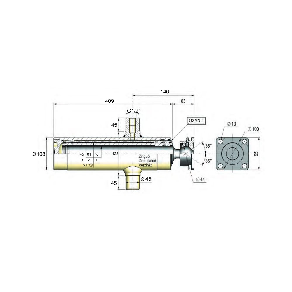 ist einfachwirkend und muss durch das Gewicht der Hublast eingefahren werden. Das Kugelgelenk ermöglicht einen optimalen Einbau, selbst bei beschränkten Einbaumöglichkeiten.