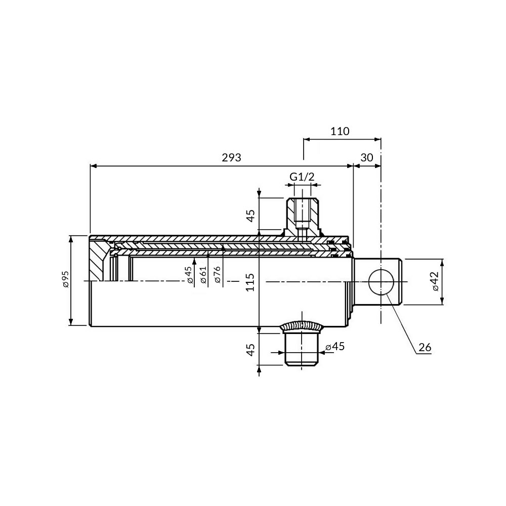 Einfachwirkender Teleskopzylinder, dreistufig, Hub 570mm Zeichnung