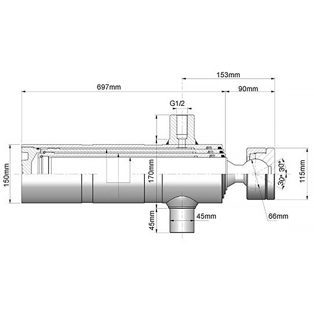 Dieser einfachwirkende Teleskopzylinder mit Kugelgelenk ist ein Qualitätsprodukt der Marke Chapel.