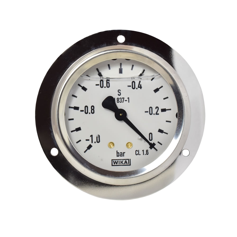 Glyzerinmanometer Ø 63 mm, -1...0 (Vakuum)bar mit Befestigungsrand