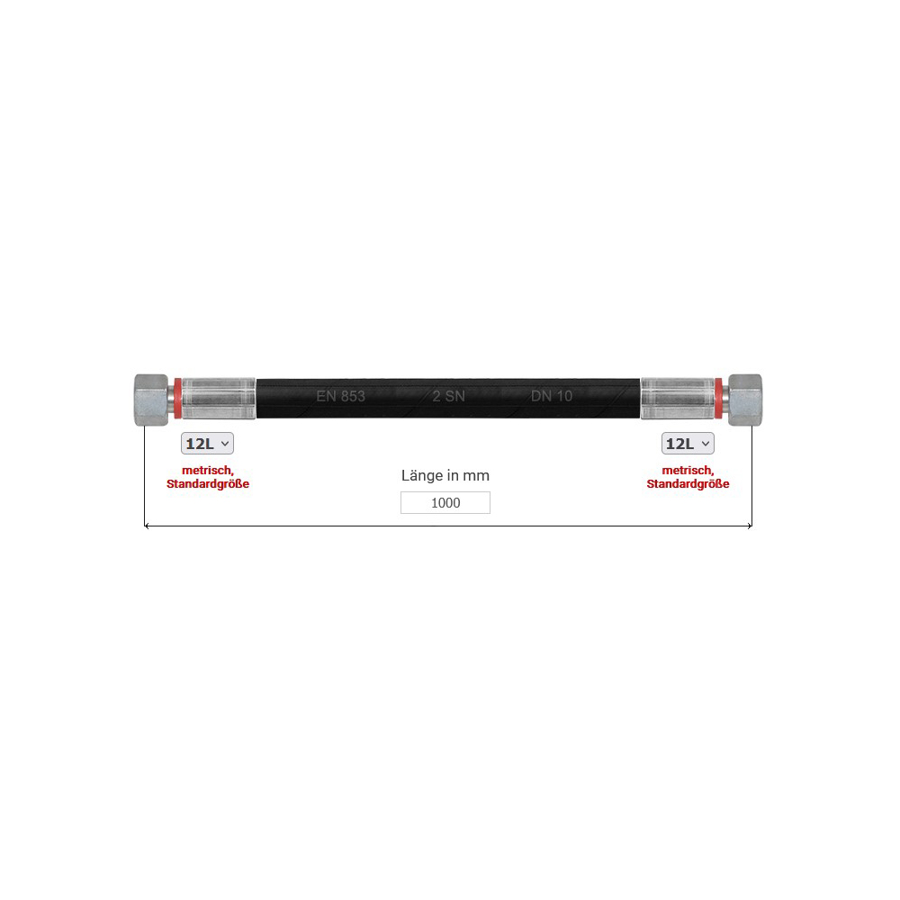 Hydraulikschlauch 2SN, Nennweite 10, 1000 mm