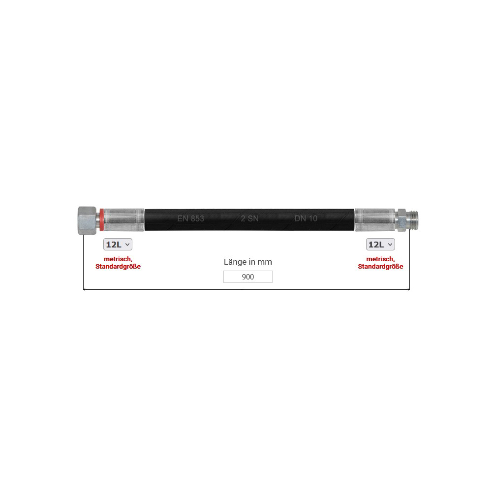 Hydraulikschlauch 2SN, Nennweite 10, 900 mm
