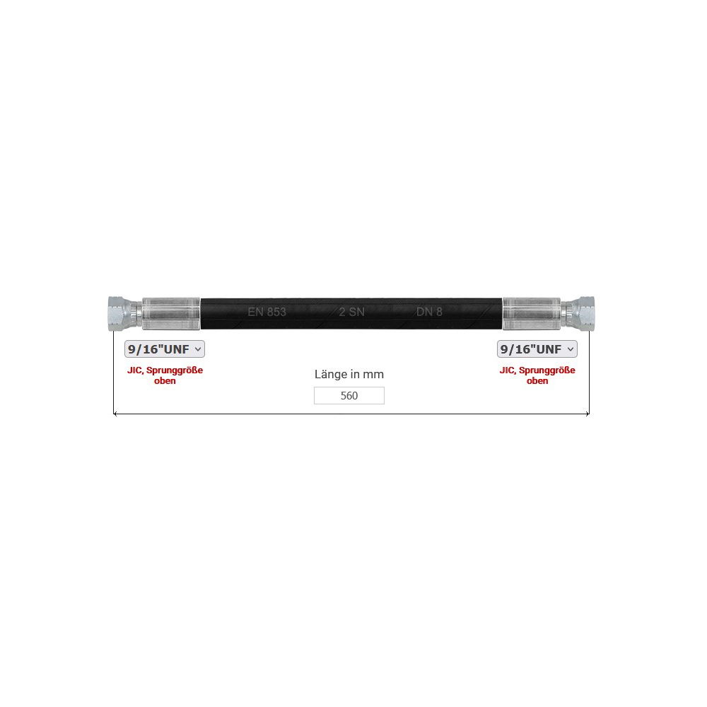 Hydraulikschlauch 2SN, Nennweite 8, 560 mm