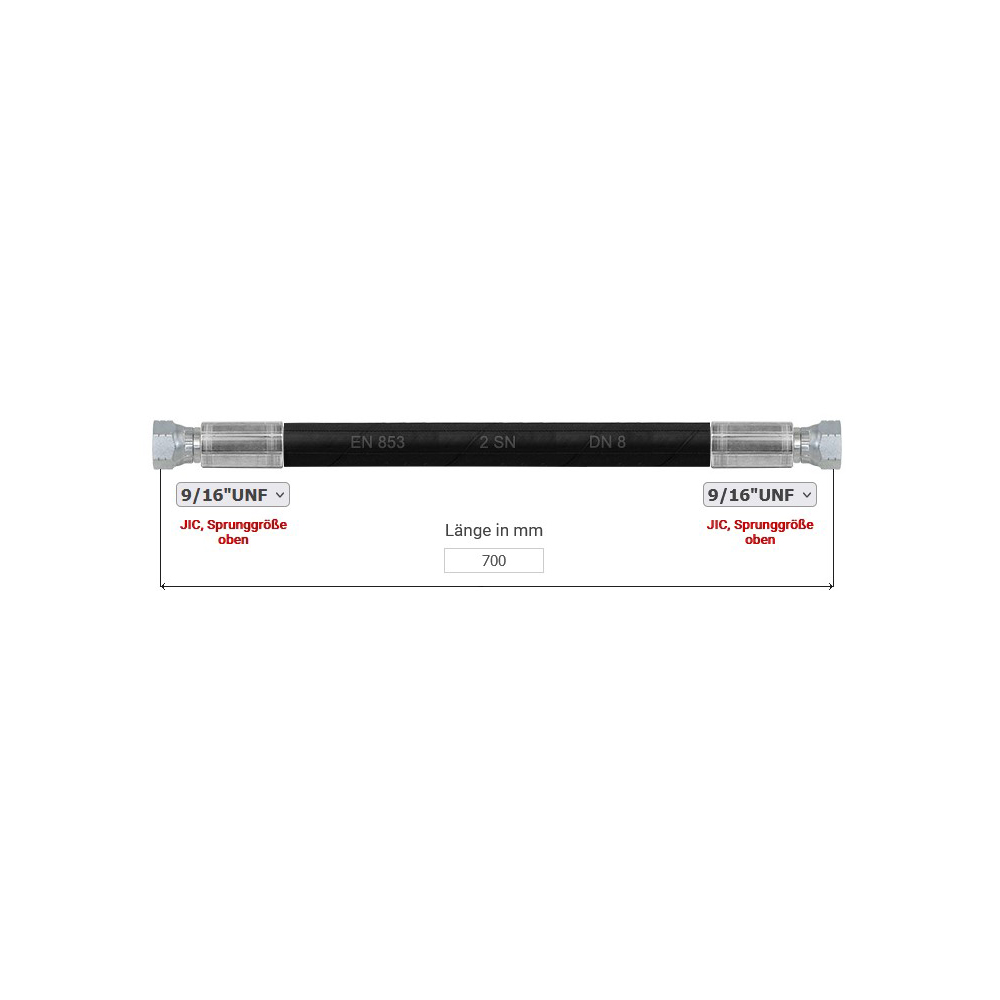 Hydraulikschlauch 2SN, Nennweite 8, 700 mm