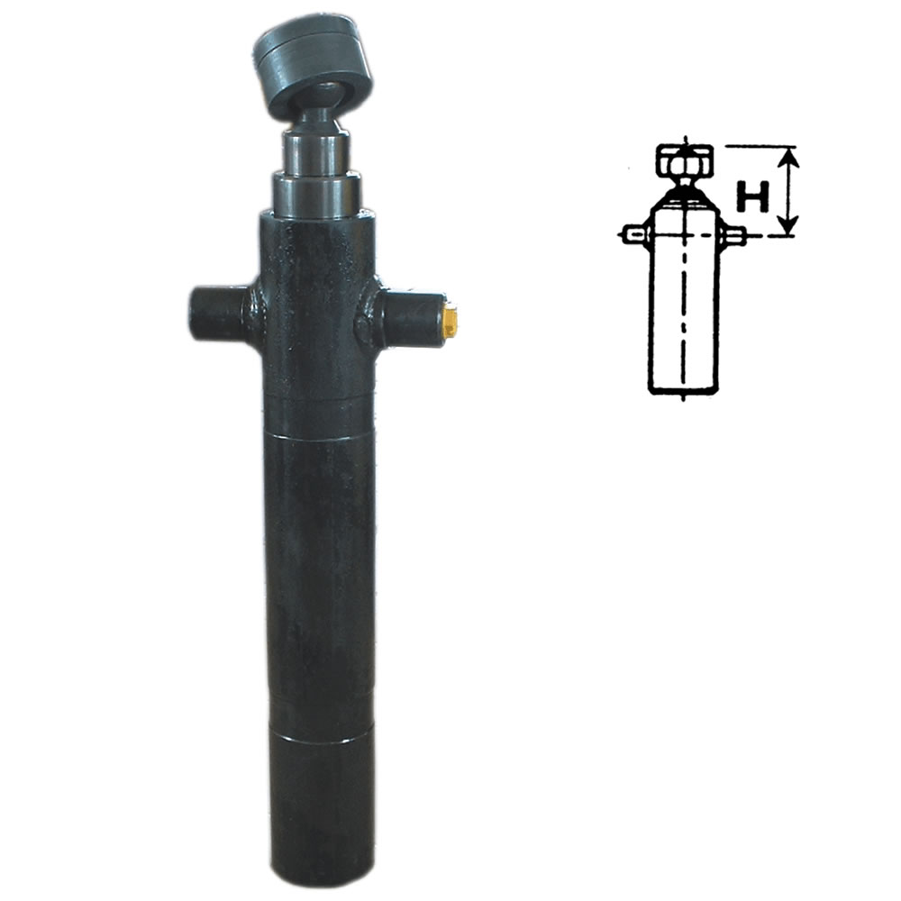 ist einfachwirkend und muss durch das Gewicht der Hublast eingefahren werden. Das Kugelgelenk ermöglicht einen optimalen Einbau, selbst bei beschränkten Einbaumöglichkeiten.