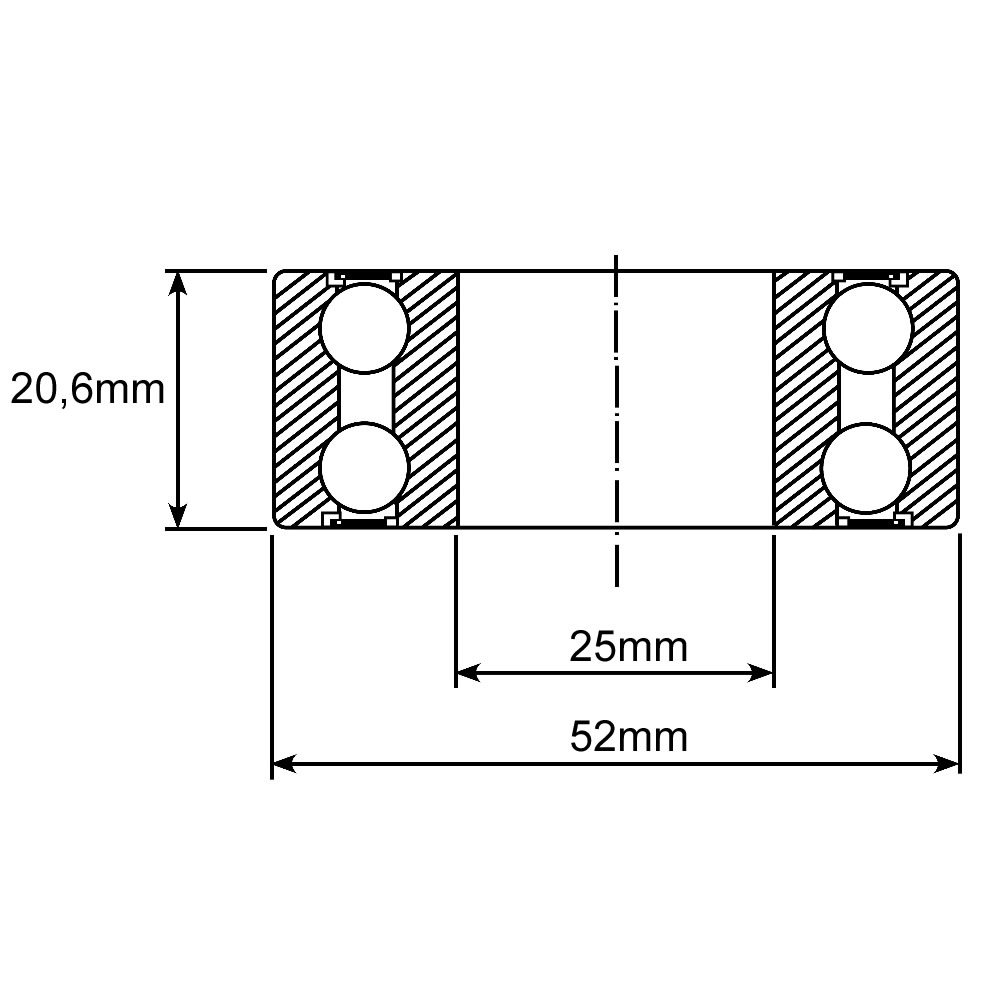 Schrägkugellager zweireihig Deckscheiben auf beiden Seiten 25x52x20,6 mm