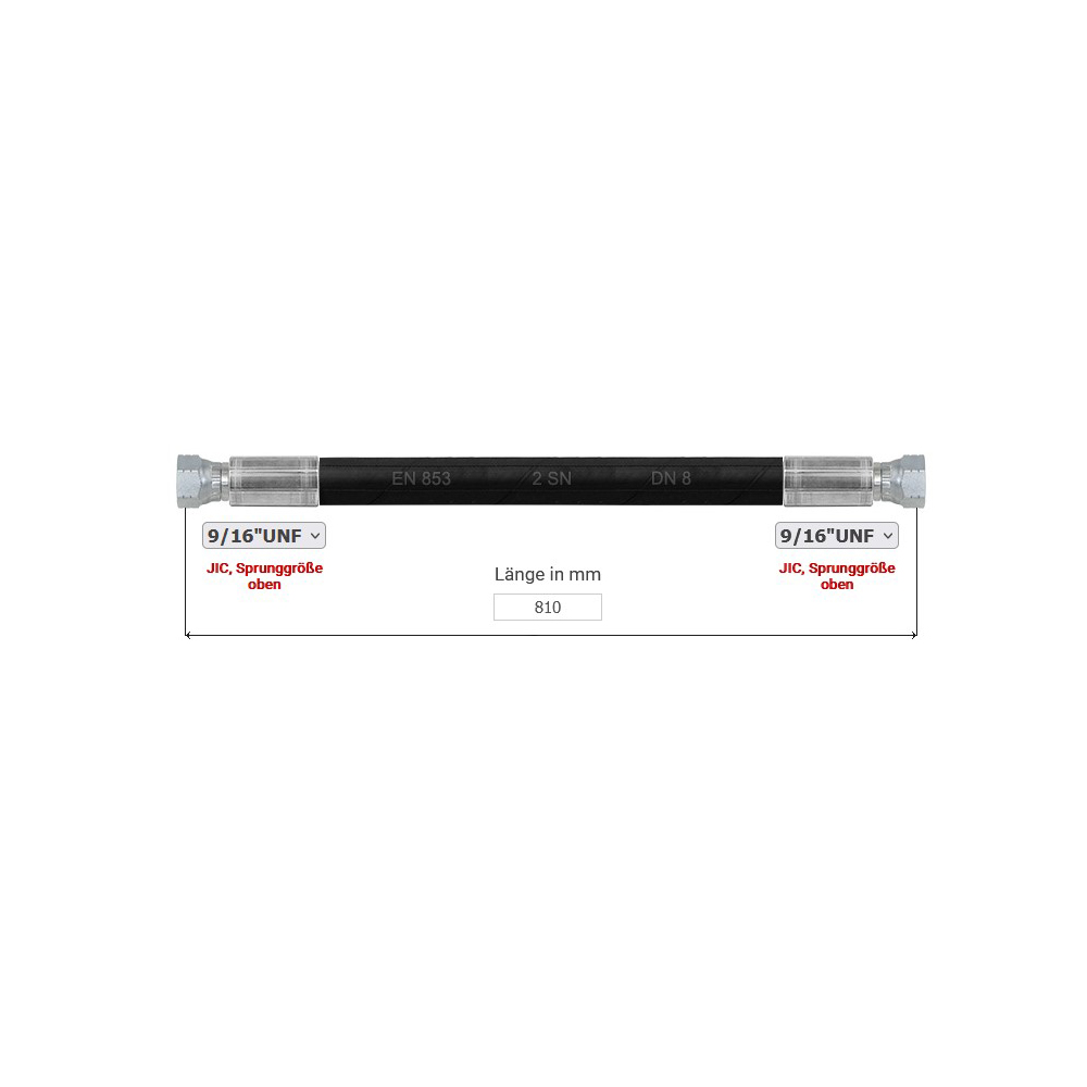 Hydraulikschlauch 2SN, Nennweite 8, 810 mm