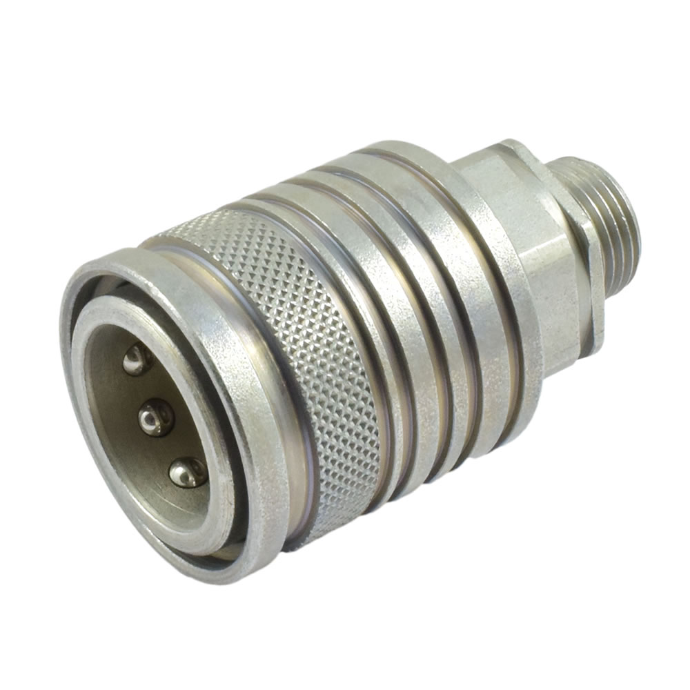 Hydraulikkupplung M22x1,5 Kupplungsmuffe der Baugröße 3 aus verzinktem Stahl mit Außengewinde für Schneidring-Rohrverschraubung nach DIN 2353.