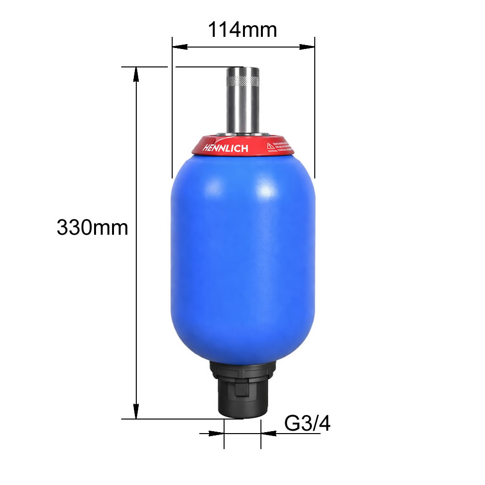 Abnahme: Die Blasenspeicher sind nach der Europäischen Druckgeräterichtlinie 97/23/EG hergestellt, geprüft und dokumentiert. Der Maximale Vorfülldruck beträgt 160 bar.